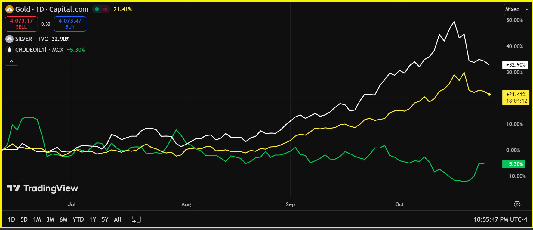 Pasar Komoditas Bergejolak: Perak Koreksi, Emas Tertekan, Minyak Melejit